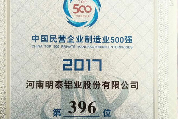 2022年7月明泰鋁業(yè)首次入選《財(cái)富》中國(guó)500強(qiáng)