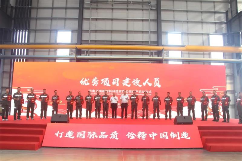 儀式上,總經(jīng)理劉杰向長(zhǎng)期以來(lái)關(guān)心支持明泰發(fā)展的各級(jí)黨委、政府,向各參建單位表示衷心的感謝,向在明泰鋁業(yè)高質(zhì)量發(fā)展過(guò)程中取得“功勛集體”榮譽(yù)的項(xiàng)目部全體員工表示熱烈的祝賀。明泰鋁業(yè)堅(jiān)持“創(chuàng)新、綠色、智慧、開(kāi)放”的發(fā)展理念,踐行“高端制造+低碳經(jīng)濟(jì)”雙驅(qū)動(dòng)戰(zhàn)略,完成了明泰科技、明晟新材以及義瑞新材等幾個(gè)重要項(xiàng)目,在逆勢(shì)中鞏固了明泰的行業(yè)優(yōu)勢(shì),標(biāo)志著明泰鋁業(yè)在高質(zhì)量發(fā)展的道路上,又向前邁出了一大步。義瑞新材以58億元總投資,旨在打造“高端+綠色+智慧”一體化生產(chǎn)制造體系,是明泰鋁業(yè)單體投資最大的一個(gè)項(xiàng)目。項(xiàng)目建設(shè)充滿挑戰(zhàn),我們抗擊了“7.20”特大洪災(zāi),克服了新冠疫情影響,突破了項(xiàng)目技術(shù)難題,處置了建設(shè)突發(fā)情況,全體參建人員患難與共,確保了項(xiàng)目按時(shí)按質(zhì)順利實(shí)施。整個(gè)項(xiàng)目在不到10個(gè)月的時(shí)間里,就建成現(xiàn)代化標(biāo)準(zhǔn)廠房15萬(wàn)平方米,各主要設(shè)備按時(shí)安裝到位,實(shí)現(xiàn)項(xiàng)目順利投產(chǎn)。未來(lái),我們要把企業(yè)打造成為技術(shù)創(chuàng)新示范企業(yè)、綠色轉(zhuǎn)型引領(lǐng)企業(yè)、智能制造標(biāo)桿企業(yè)和開(kāi)放發(fā)展先鋒企業(yè),堅(jiān)定“項(xiàng)目為王”理念,通過(guò)建項(xiàng)目來(lái)擴(kuò)產(chǎn)能、通過(guò)建項(xiàng)目來(lái)提質(zhì)量、通過(guò)建項(xiàng)目來(lái)促轉(zhuǎn)型,實(shí)現(xiàn)企業(yè)高質(zhì)量發(fā)展,為地方經(jīng)濟(jì)社會(huì)發(fā)展貢獻(xiàn)力量,為行業(yè)發(fā)展增光添彩!