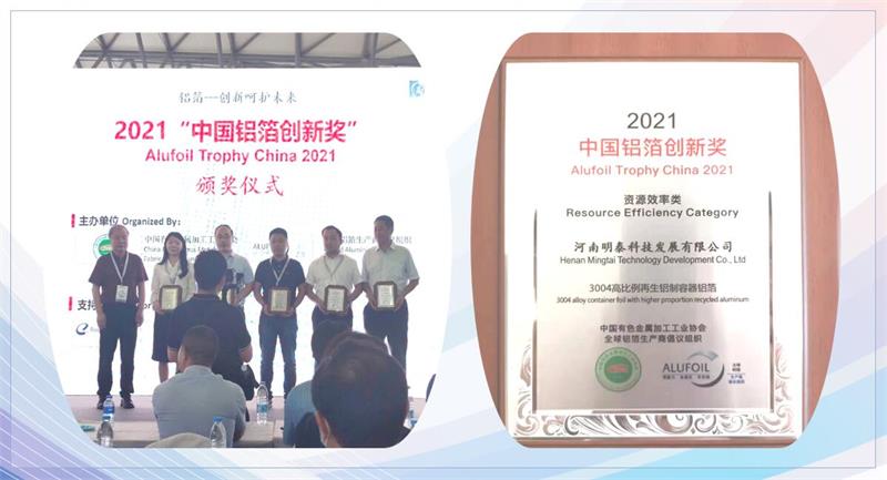 明泰科技3004容器鋁箔榮獲2021中國鋁箔創(chuàng)新獎